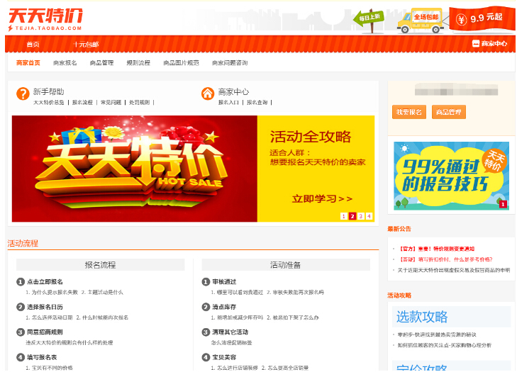 2、在产品下架时间的前三天去报名天天特价的活动,产品权重越高的时间段去报名审核,对通过率是很有帮助的。