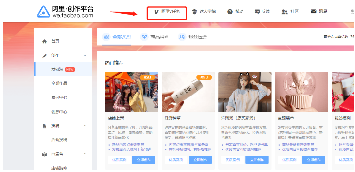 现在对于这些在我们淘宝都是有渠道去做的,也可以请有粉丝基础的人帮助你,自运营中心--发微淘--上方有一个阿里V任务里就可以去找,因为我们本身粉丝基础是比较少或者没有的,这个时候如果去找有粉丝基础的达人去帮忙宣传可以说是一个很好的方式,我们本身也是可以去运营粉丝的,但是运营粉丝的事情比较多和复杂,为了省时省力大家直接找达人合作就可以了,当然你说我本身就有这样一个爱好和梦想也可以自己去利用社交平台去吸粉。在说一下微淘,它就是一个完全免费的渠道,为什么要浪费呢?在做这些的时候,如果对于图文和微淘还不是很熟练的话,可以先去模仿一下别人的文字和方式,每天都可以去发一篇,等到后期,有了粉丝基础后,在去提升内容价值。