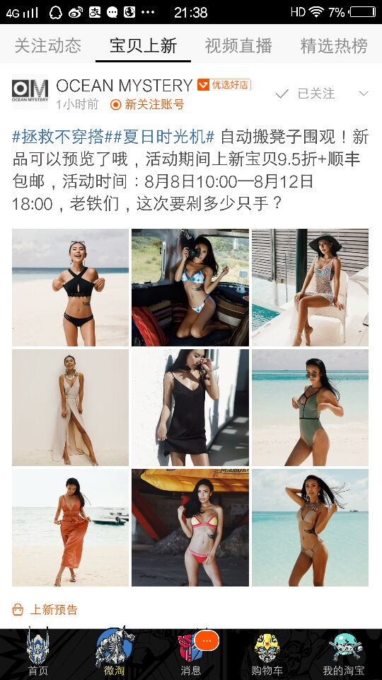 2.除了直通车预热定时上架的宝贝之外,微淘也是预热的重要渠道,在微淘里投放预热产品的链接和图片,有利于买家提早的加购收藏,提些小建议: