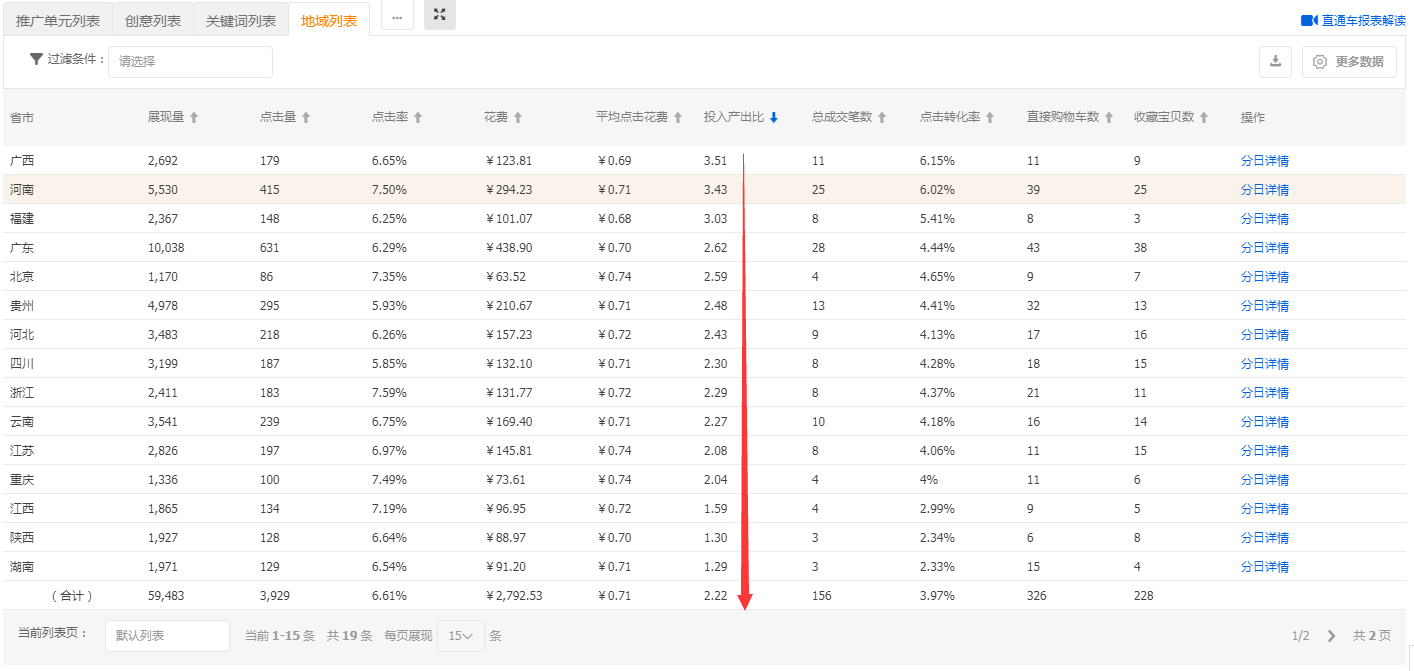 通过直通车地域数据分析选择精准地域进行投放,直通车的计划报表里有详细的数据根据周期数据进行调整,但是这里只能到省级细分到市级市的地域细分可以参考生意参谋里的市场行情专业版里进行分析市场表现,来给与我们地域设置的参考。